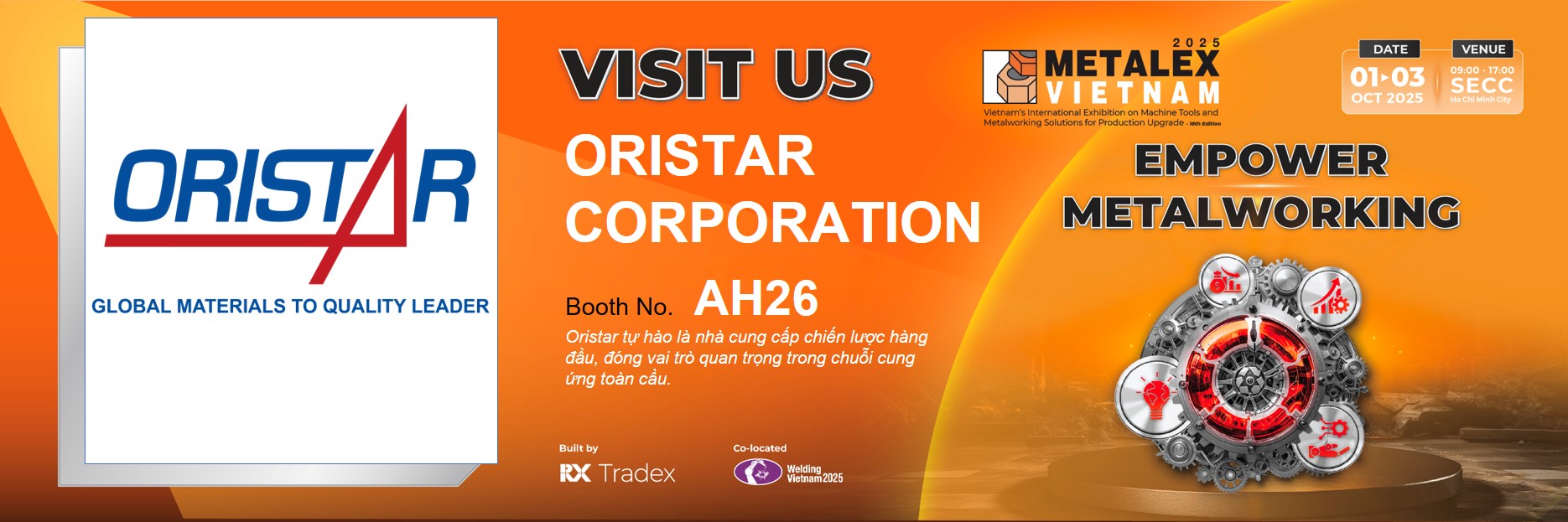 Công ty ORISTAR CORPORATION trân trọng kính mời Quý Khách hàng và Đối tác đến tham quan gian hàng của chúng tôi tại Triển lãm METALEX Vietnam 2025 – sự kiện quốc tế hàng đầu trong lĩnh vực gia công kim loại và sản xuất, nơi hội tụ những công nghệ tiên tiến, máy móc hiện đại và giải pháp đột phá.